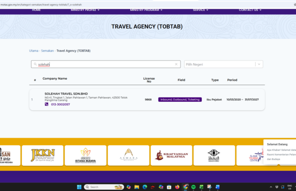 Anda boleh melayari laman web rasmi MOTAC untuk menyemak sama ada syarikat tersebut memiliki lesen perniagaan yang sah (bidang Inbound, Outbound atau Ticketing). Jika nama syarikat tidak wujud dalam pangkalan data pihak berkuasa, itu adalah petanda besar bahawa anda perlu menjauhkan diri dengan segera.