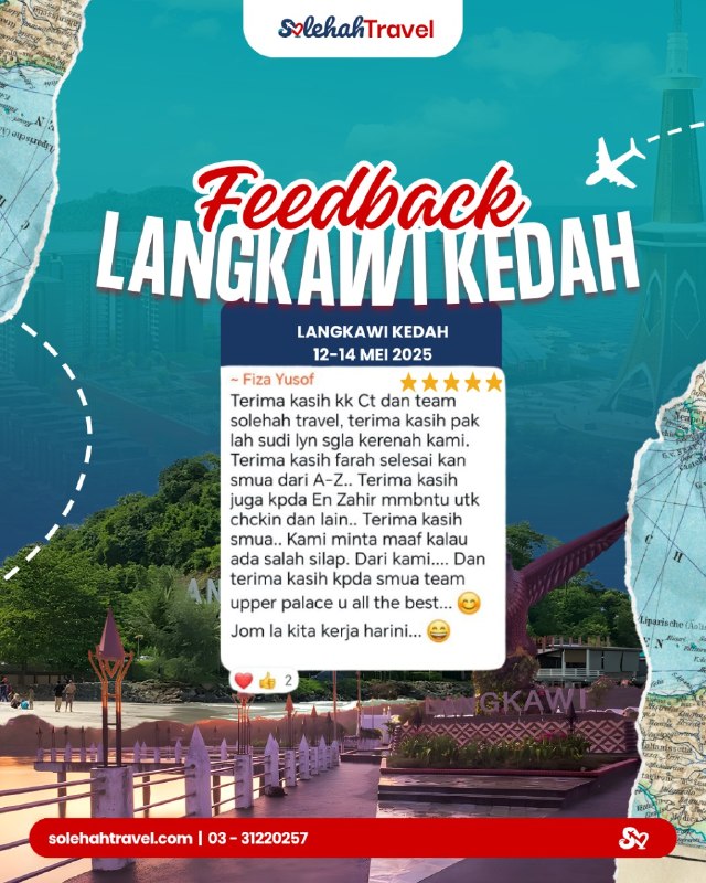 Pakej ini sesuai untuk keluarga, rakan mahupun pasangan yang ingin percutian santai tetapi penuh aktiviti. Jom tempah sekarang dan nikmati keindahan Langkawi sambil cipta kenangan manis yang tak terlupakan!