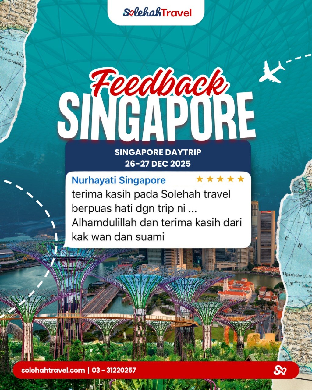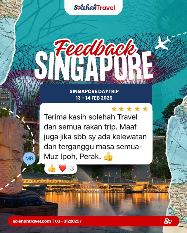 PengenalanPengalaman Sehari, Kenangan Seumur Hidup Ingin menikmati keindahan dan tarikan menarik Singapura tanpa perlu bermalam? Pakej Singapore Day Trip kami direka khas untuk anda yang ingin menjelajah negara moden ini dalam masa sehari sahaja – selesa, padat dan penuh pengalaman menarik!